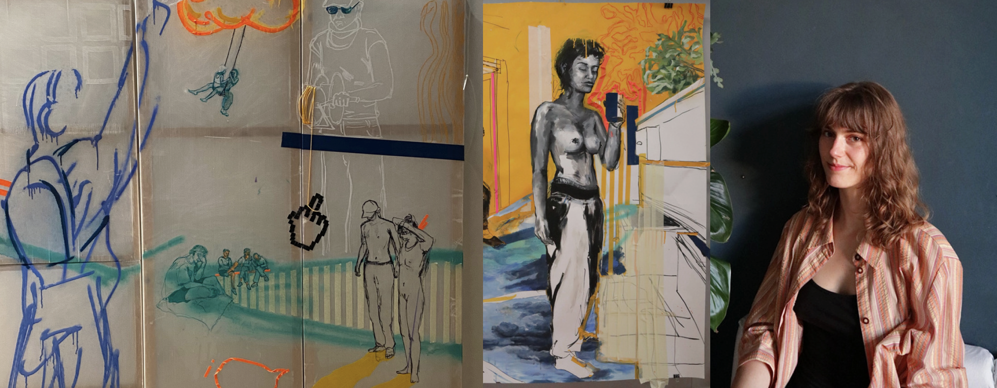 Julia Ihlenburg lebt in Landau in der Pfalz und studiert seit 2021 Kunst an der RPTU. Sie arbeitet hauptsächlich mit Mixed Media, u. a. Edding, Tape, Sprühfarbe, Acryl und Tusche. 2024 gewann sie den Förderpreis „Nachwuchspreis für Junge Kunst“ des Kulturzentrums Herrenhof.Ihre Motive greifen Alltagsmomente, träumerische Sequenzen und freche figürliche Graffiti auf, häufig auf upgecycelten Materialien wie alte Schallplatten, Kartons oder Planen. Thematisch setzt sie sich mit Empowerment, queeren Themen, Nachhaltigkeit und gesellschaftlicher Schnelllebigkeit auseinander.